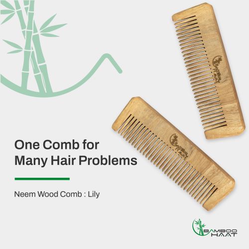Neem Wood Combs - Lily are (12.5 cm x 3.5 cm) in dimension. These combs are suitable alternative to the traditional plastic combs and helps in reducing plastic pollution.